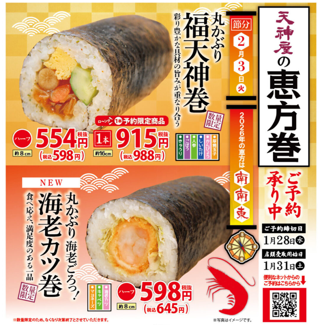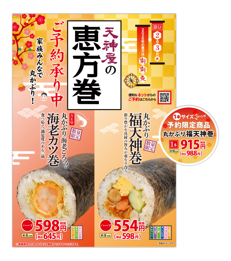 2026年の節分に向けて、天神屋の恵方巻のご予約受付を開始いたしました。