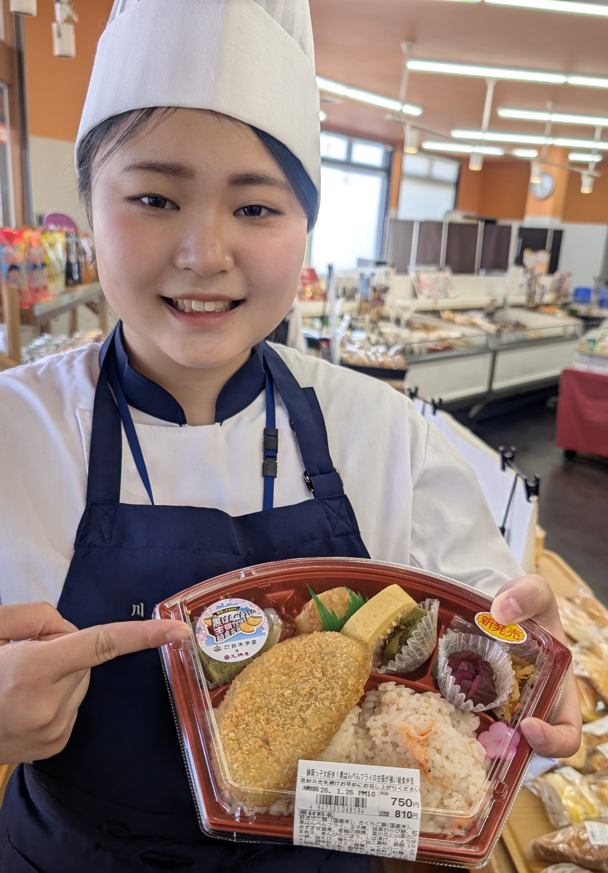 今回は上級調理経営学科2年生が取り組み、その中から川崎彩流(かわさき あいる)さんが考案した「静岡っ子大好き!黒はんぺんフライの主張が強い給食弁当」が選出され、ついに商品化決定しました。学生の想いが詰まった特別なお弁当、ぜひご賞味ください!