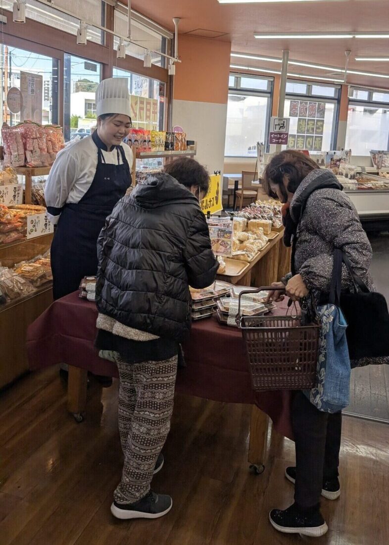 発売当日 曲金店にて店頭販売を実施しました! 実際手に取ってくださるお客様に、「黒はんぺんが本当に好きなんです。」と笑顔で話す川崎さん。