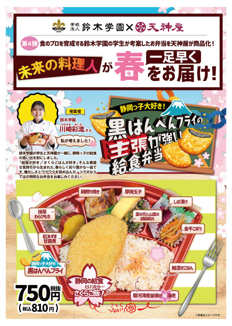 静岡のソウルフード「しぞーかおでん」をはじめ、地域に根ざした味を届ける天神屋(本社:静岡県静岡市 代表取締役:有田一喜)は、学校法人鈴木学園 中央調理製菓専門学校静岡校と共同開発したお弁当を発売します。