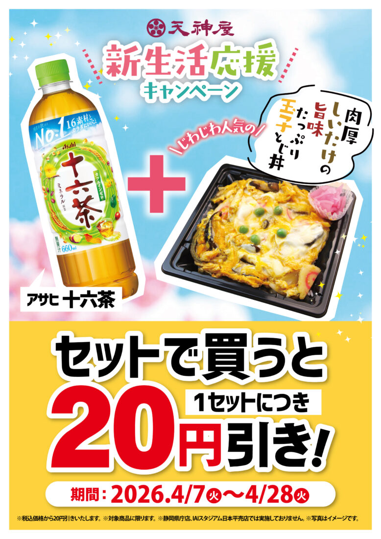 有田一喜)は、2026年4月7日(火)から4月28日(火)までの期間、天神屋全店(※静岡県庁店・IAIスタジアム日本平店を除く)にて「新生活応援キャンペーン」を実施いたします。